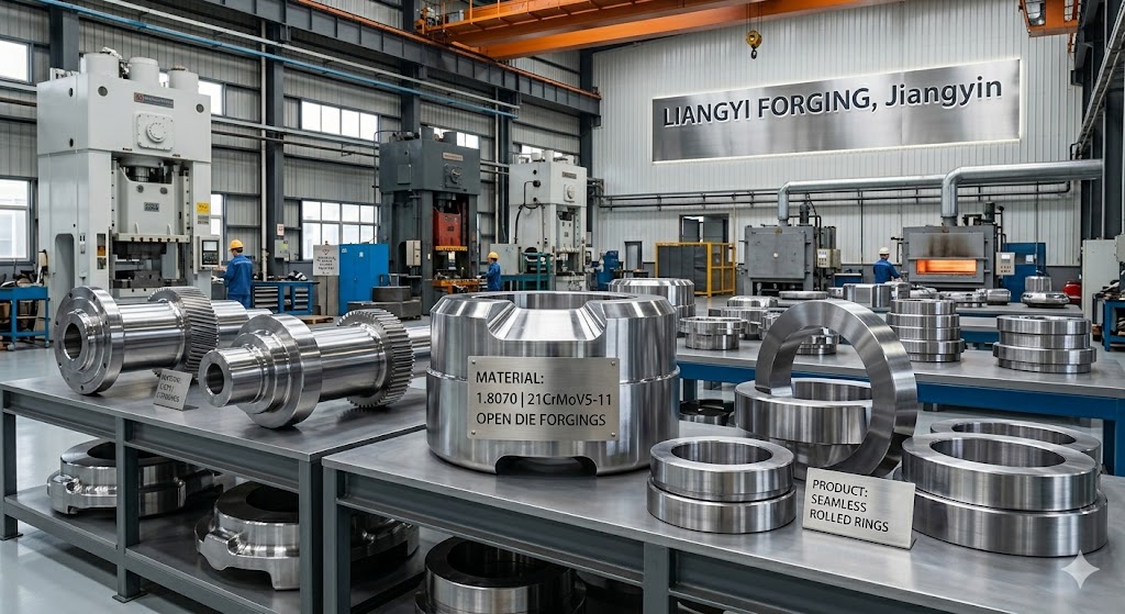 Jiangsu Liangyi Co., Limited, based in Jiangyin, Jiangsu, China, has manufactured 1.8070 / 21CrMoV5-11 open die forgings, seamless rolled rings and precision machined components since 1997. The facility is ISO 9001:2015 certified and ships to customers in more than 50 countries.