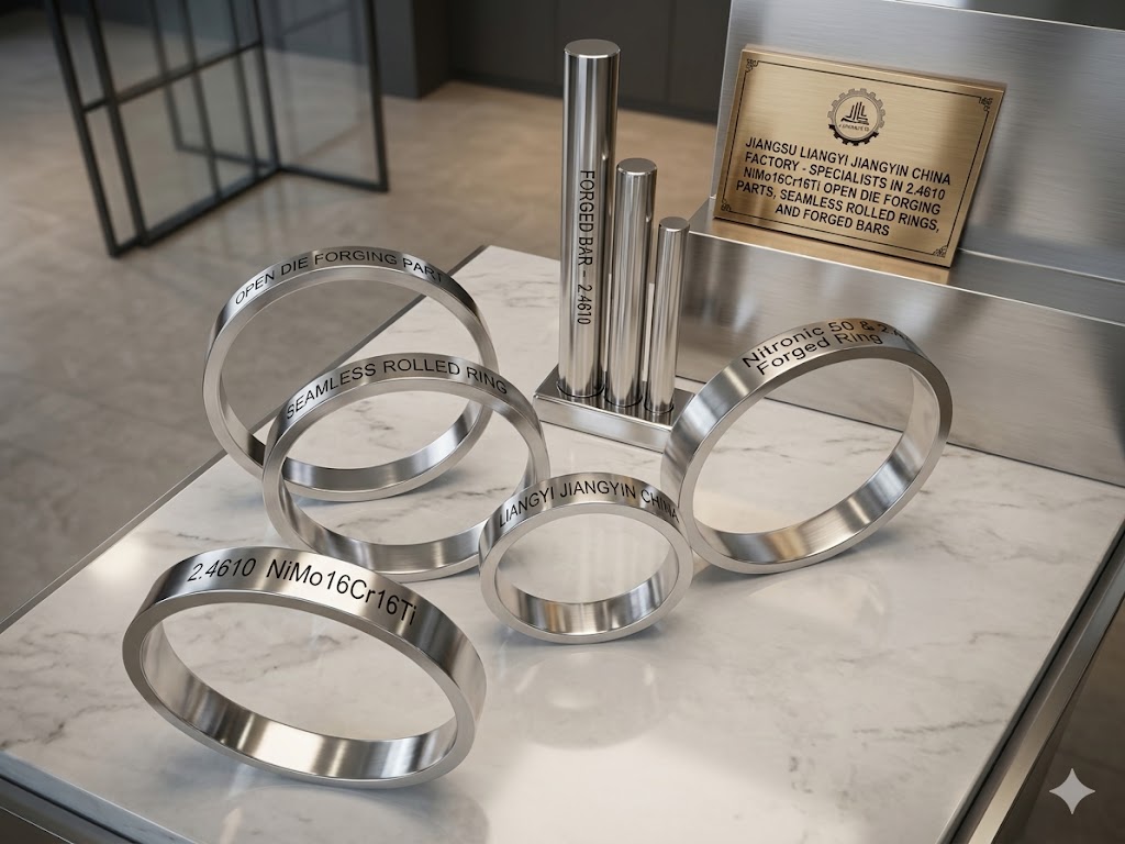 2.4610 (NiMo16Cr16Ti) forging parts from Jiangsu Liangyi Co., Limited, an ISO 9001:2015 certified factory based in Jiangyin, China , are high-performance nickel-chromium-molybdenum corrosion-resistant superalloy parts. They are used for extremely harsh industrial environments.Our factory is located in Jiangyin City, Jiangsu Province, the main high-end forging industry cluster in China, and we supply custom NiMo16Cr16Ti forged parts to customers in more than 50 countries around the world. Our products all meet API 6A, ASME, PED 2014/68/EU, DIN, EN and NACE MR0175 standards, with complete document support to meet your compliance needs.