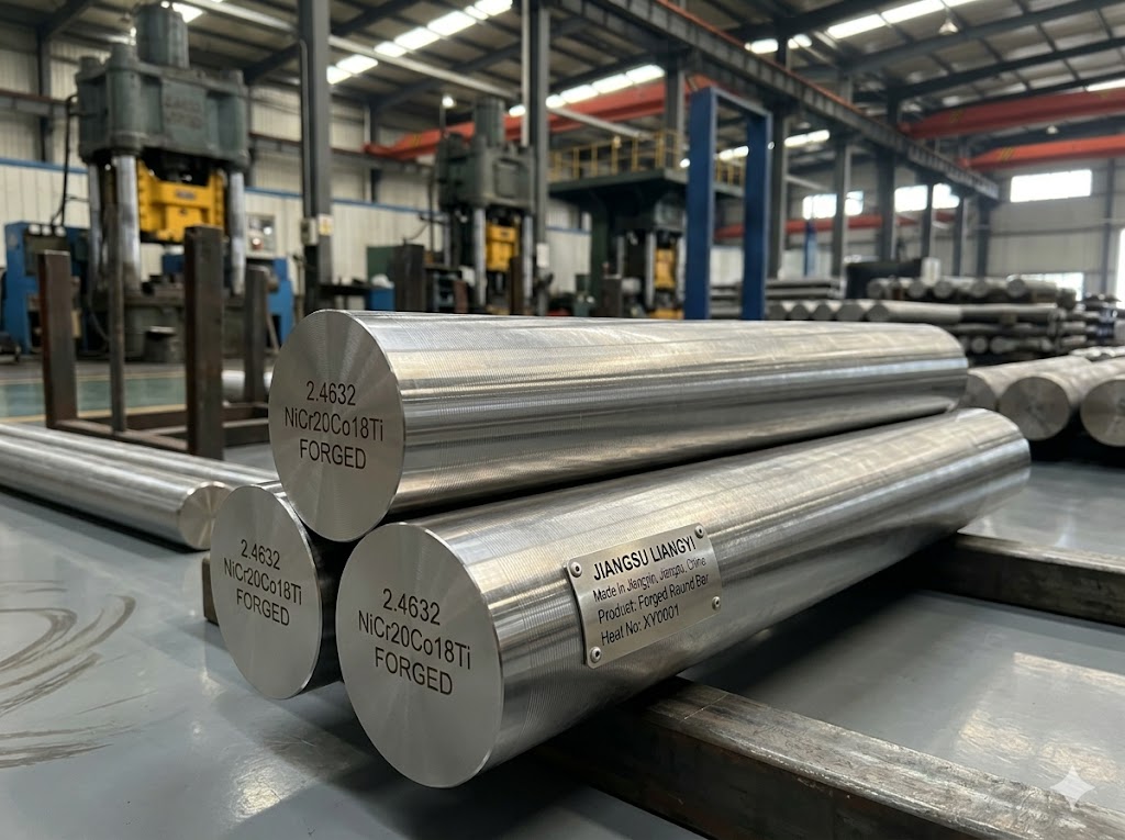 Jiangsu Liangyi Co., Limited, located in Chengchang Industry Park, Jiangyin City, Jiangsu Province, China, is a leading professional manufacturer of 2.4632 (2.4969, NiCr20Co18Ti) open die forging parts and seamless rolled steel forged rings. With over 25 years of specialized experience in high-temperature alloy forging, we produce precision-engineered 2.4632 alloy components — also widely known as Nimonic® Alloy 90 — that deliver exceptional performance in extreme operating conditions up to 920°C.